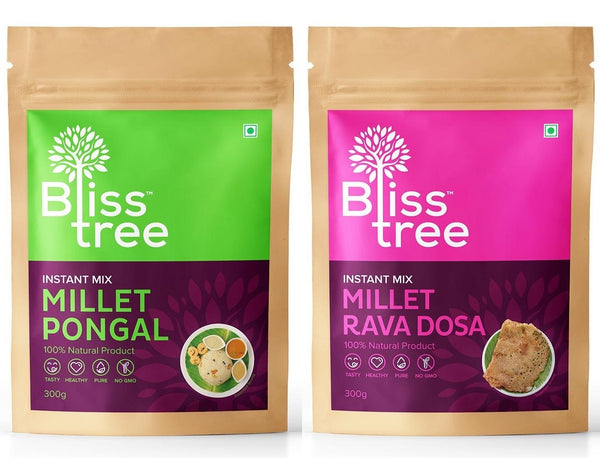 This super delicious pack of Bliss Tree Millet Rava Dosa Mix has gained huge popularity for its freshness and taste. Use Bliss Tree Millet Pongal Mix made from a fine blend of millet grains added with natural ingredients to make Pongal delicious and awesome in taste.